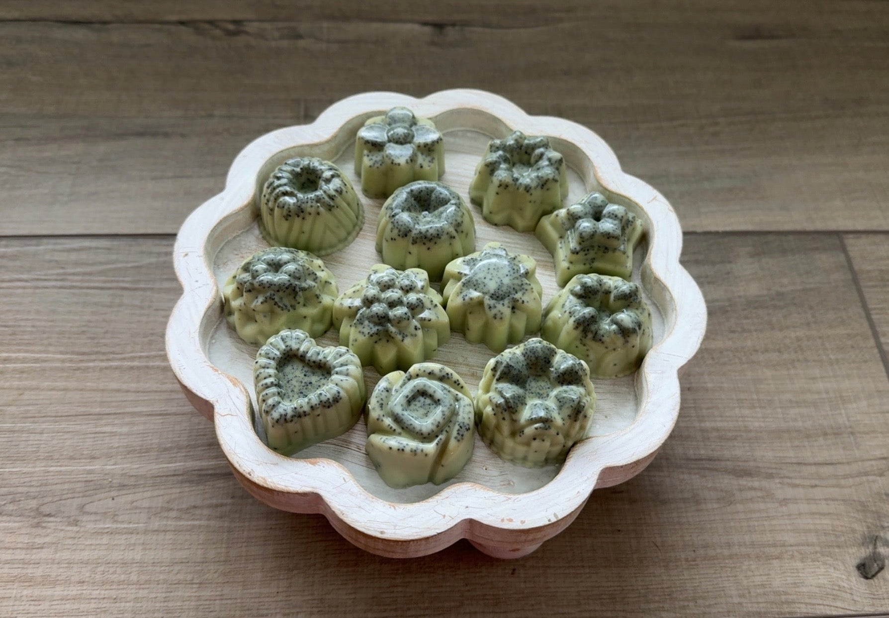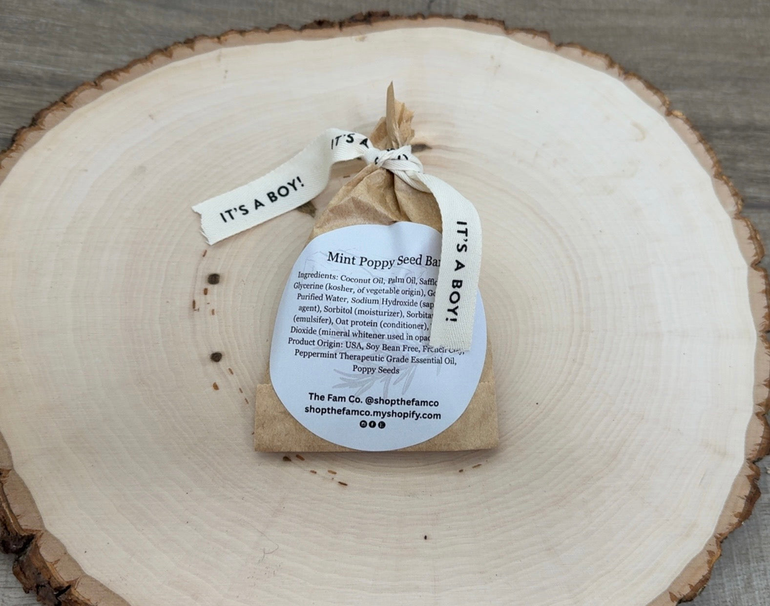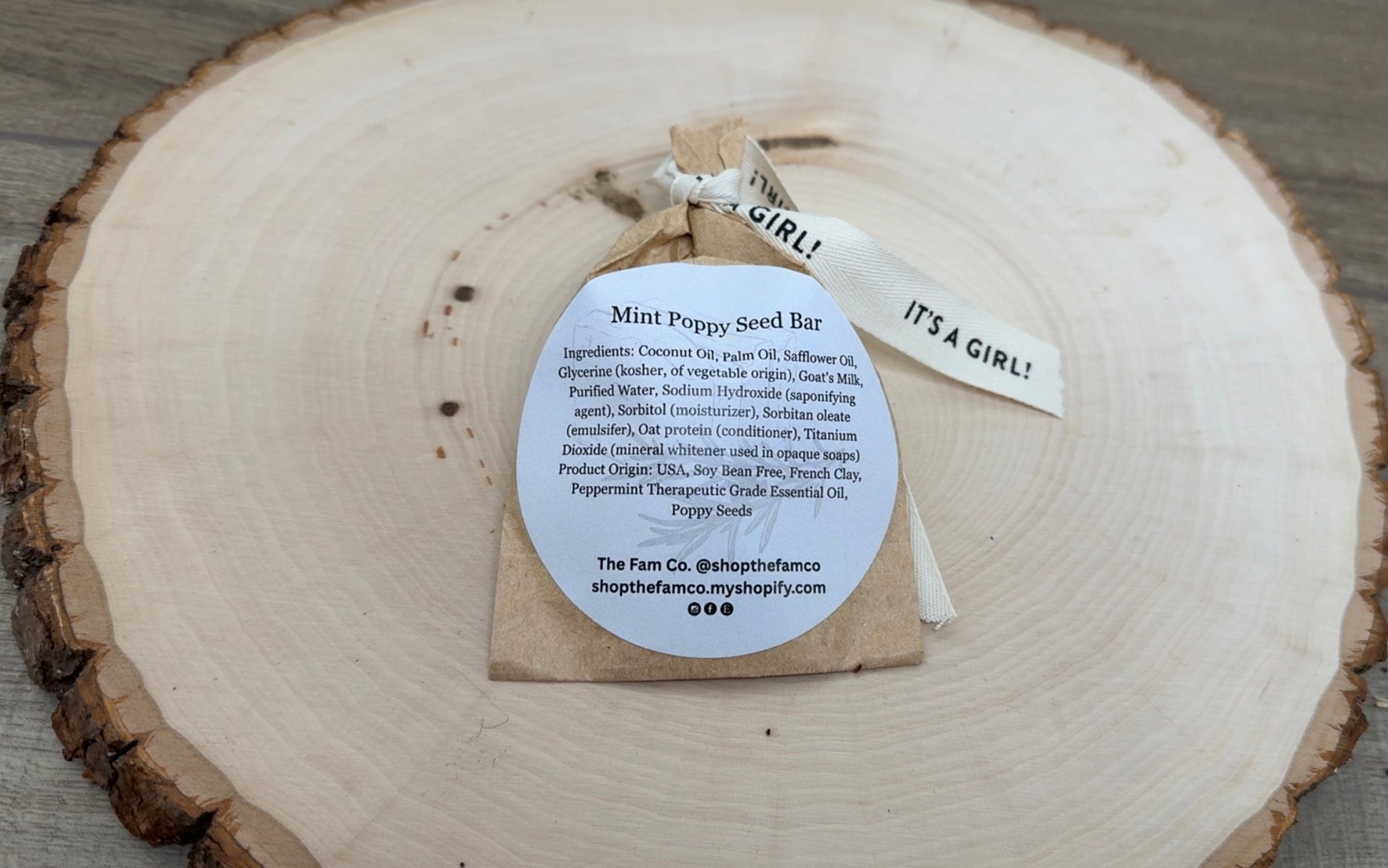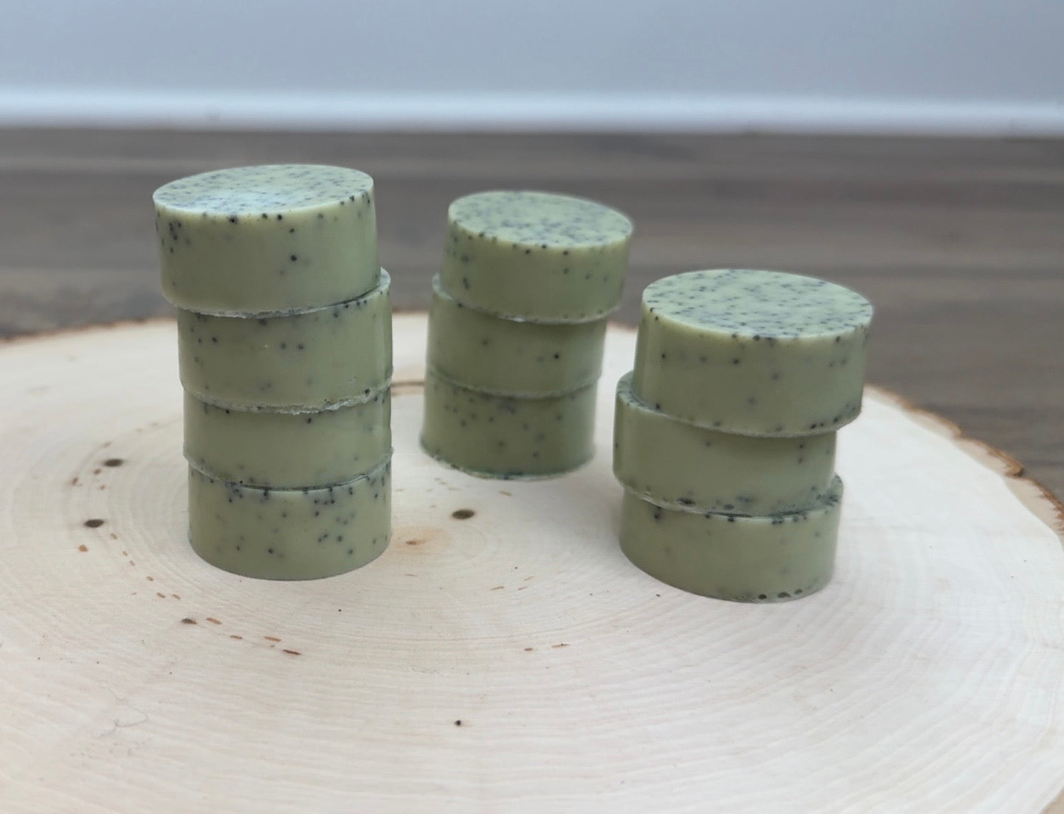 🌱 Mint Poppy Seed Bar – Invigorating and exfoliating. Poppy Seeds and Clay gently polish the skin while Mint Essential Oil delivers a refreshing, energizing finish.